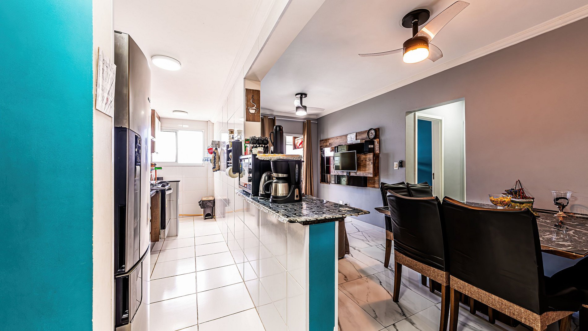A cozinha possui todos os equipamentos necessários e o ambiente foi planejado para garantir sua comodidade. Você terá à disposição uma vaga de garagem coberta, além de toda a segurança e estrutura que um edifício de alto padrão oferece.